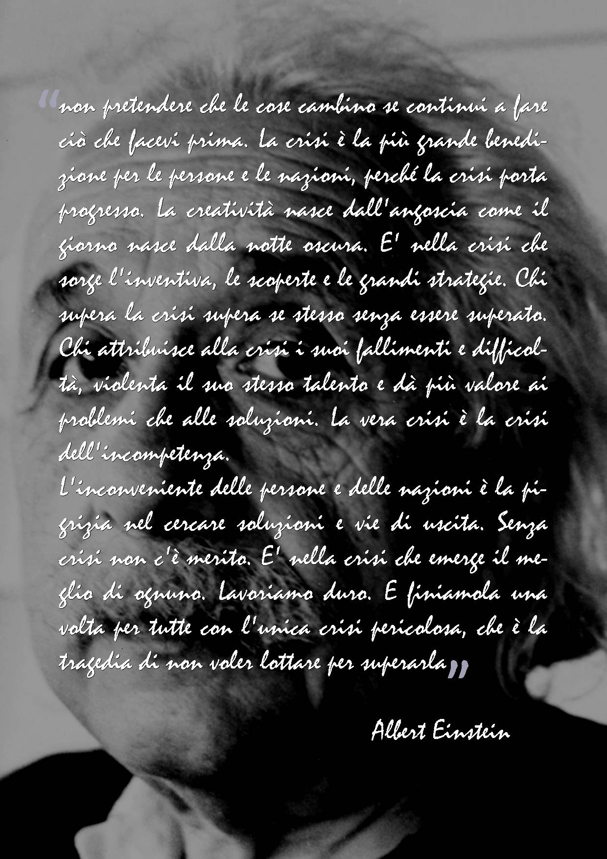 La crisi è la più grande benedizione per le persone e le nazioni, perché la crisi porta progressi. La creatività nasce dall’angoscia come il giorno nasce dalla notte oscura. E’ nella