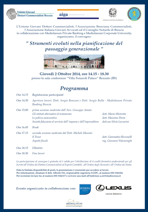 Rezzato , 02.10.2014 - Convegno : Strumenti evoluti nella pianificazione del passaggio generazionale