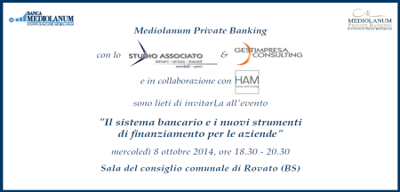 Rovato,08.10.2014 - “Il sistema bancario e i nuovi strumenti di finanziamento per le aziende”