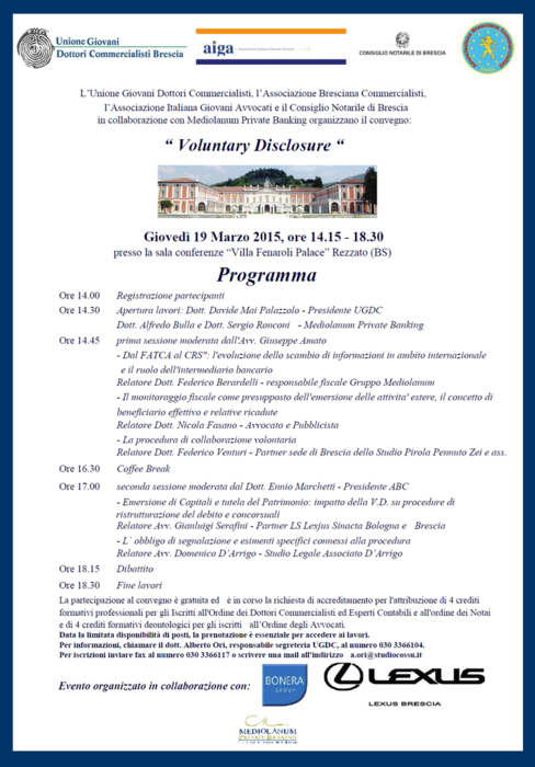 Rezzato , 28 marzo 2015 - Convegno : Voluntary Disclosure