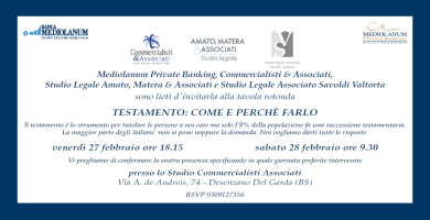 Desenzano, 27 e 28 febbraio 2015 - " Il testamento come e perchè farlo "