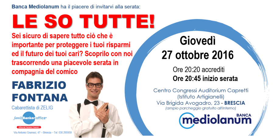 © Sergio Ronconi Via Gramsci n. 47 - 25121 Brescia -- Mobile 335 2452127 -- Partita IVA: IT03194330175 -- Iscritto all'Albo dei Promotori Finanziari Delibera Consob n. 7036 del 04/05/1993 -- Iscrizione RUI n. E000044262 Intermediario: Banca Mediolanum Spa