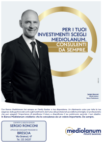 © Sergio Ronconi Via Gramsci n. 47 - 25121 Brescia -- Mobile 335 2452127 -- Partita IVA: IT03194330175 -- Iscritto all'Albo dei Promotori Finanziari Delibera Consob n. 7036 del 04/05/1993 -- Iscrizione RUI n. E000044262 Intermediario: Banca Mediolanum Spa