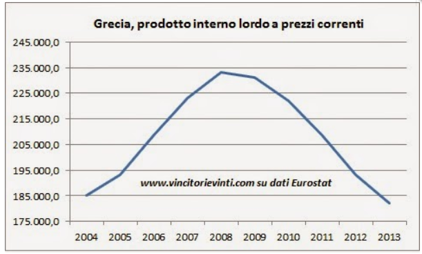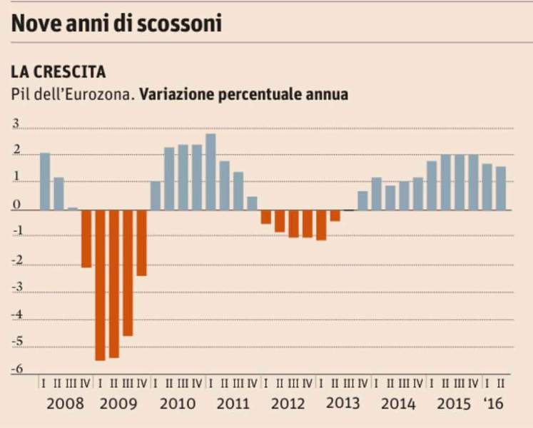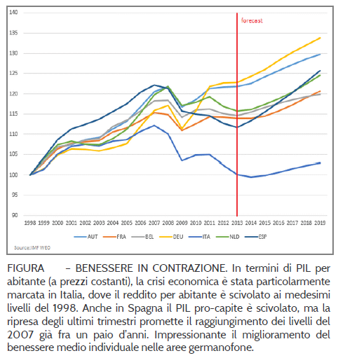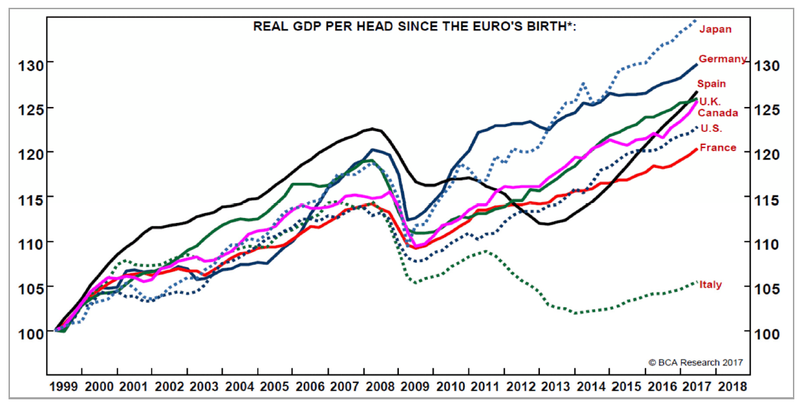 Febbraio 2018 - Andamento PIL pro capite , al netto dell'inflazione, dall'introduzione dell'euro ad oggi.