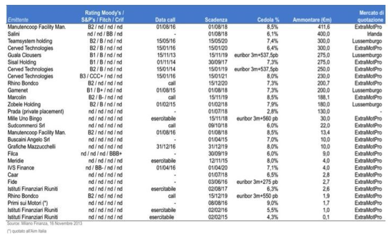 Novembre 2013 - Emissioni di minibond ad oggi completate