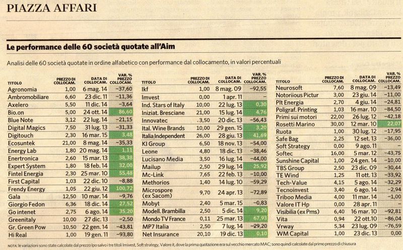Marzo 2015 - Le performance delle società quotate all'AIM Italia
