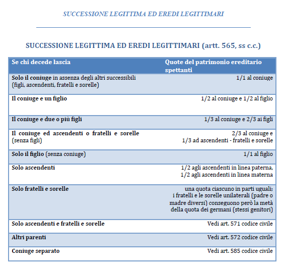 Successione legittima ed eredi ligittimari ( art. 565 ss c.c. )