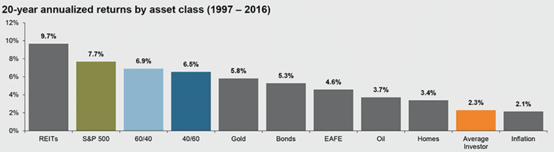 Febbraio 2017 - Ritorni annui per asset class degli utlmi 20 anni.