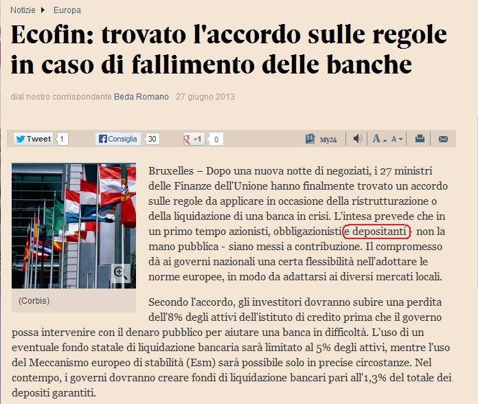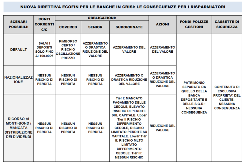 Gennaio 2014 - Nuova direttiva Ecofin per le banche in crisi : le conseguenze per i risparmiatori