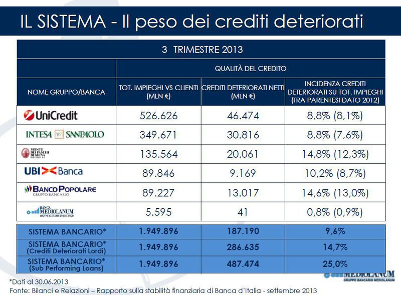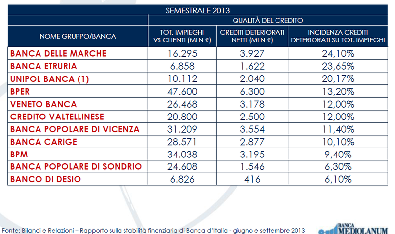 Gennaio 2014 - Banche Italiane di medie dimensioni : il peso dei crediti deteriorati