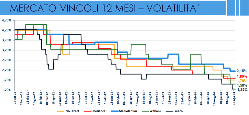 Agosto 2014 - I tassi sui vincoli a 12 mesi dei principali competitor