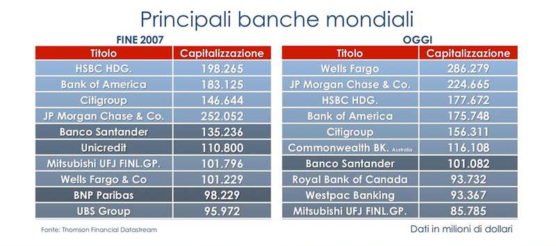 Febbraio 2015 - Le principali banche mandiali nel 2007 e oggi