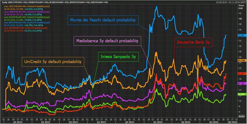 Settembre 2016 - Le probabilità di default delle principali banche italiane  a 5 anni