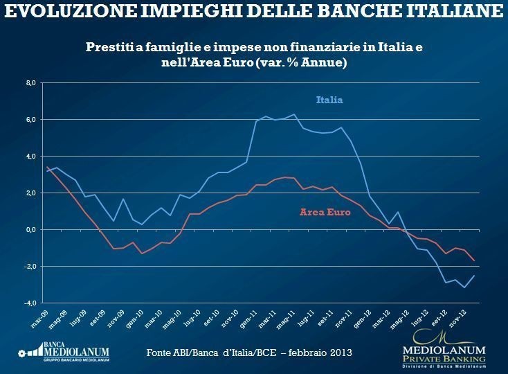 Febbraio 2013 - Evoluzione degli impieghi delle banche in Italia e in Europa