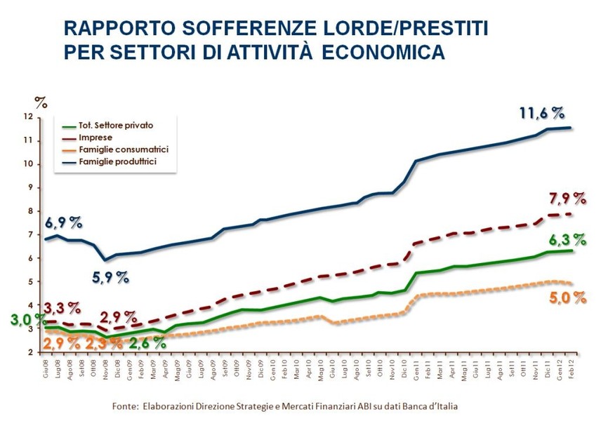 Febbraio 2012 - Banche italiane : l'evoluzione delle sofferenze sui prestiti per settori