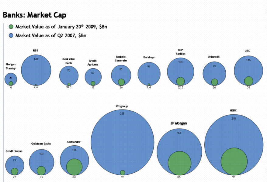 Gennaio 2009 - Capitalizzazione delle principali banche mondiali nel secondo trimestre del 2007 e a gennaio del 2009