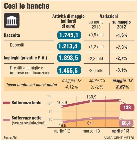 Giugno 2013 - Sofferenze bancarie mai cosi alte