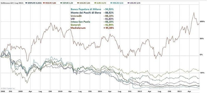 Luglio 2013 - Andamento dei principali titoli bancari/finanziari a Piazza Affari