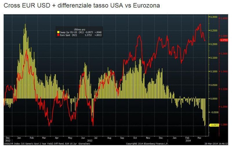 Analizzando il differenziale di tasso tra i titoli USA e dell’Eurozona, un cross in area 1.37 sembrerebbe ingiustificabile