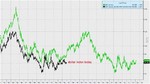 In verde il Dollar Index in versione storica, in nero il Dollar index attuale tirato indietro di circa 17 anni.